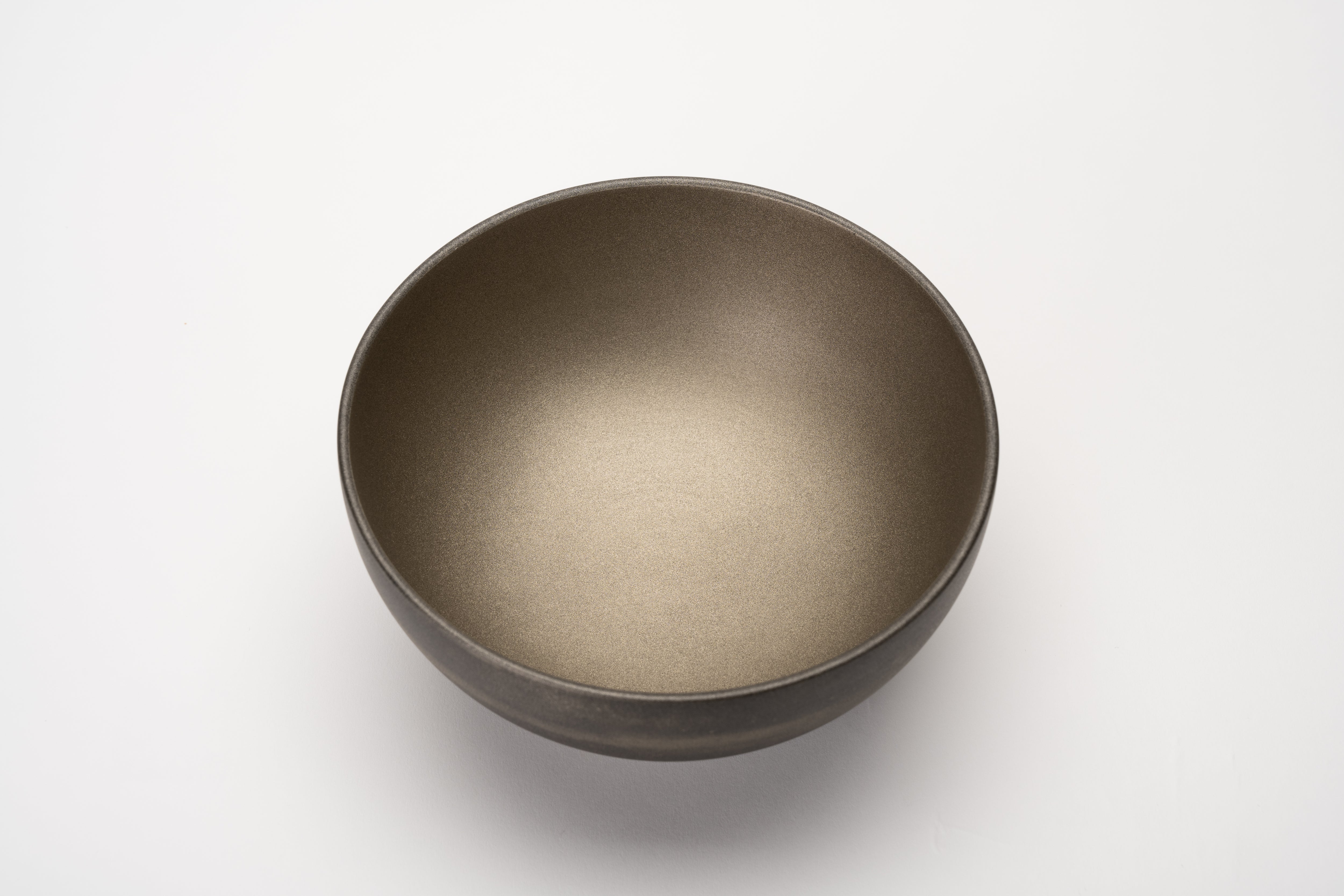 This bowl is made by MEGURU in the Aizu region of Fukushima Prefecture, drawing on a lacquer tradition that stretches back centuries. The shibuichi finish gives it a presence that is harder to categorize than a straightforward lacquer: cool, textured, almost mineral.