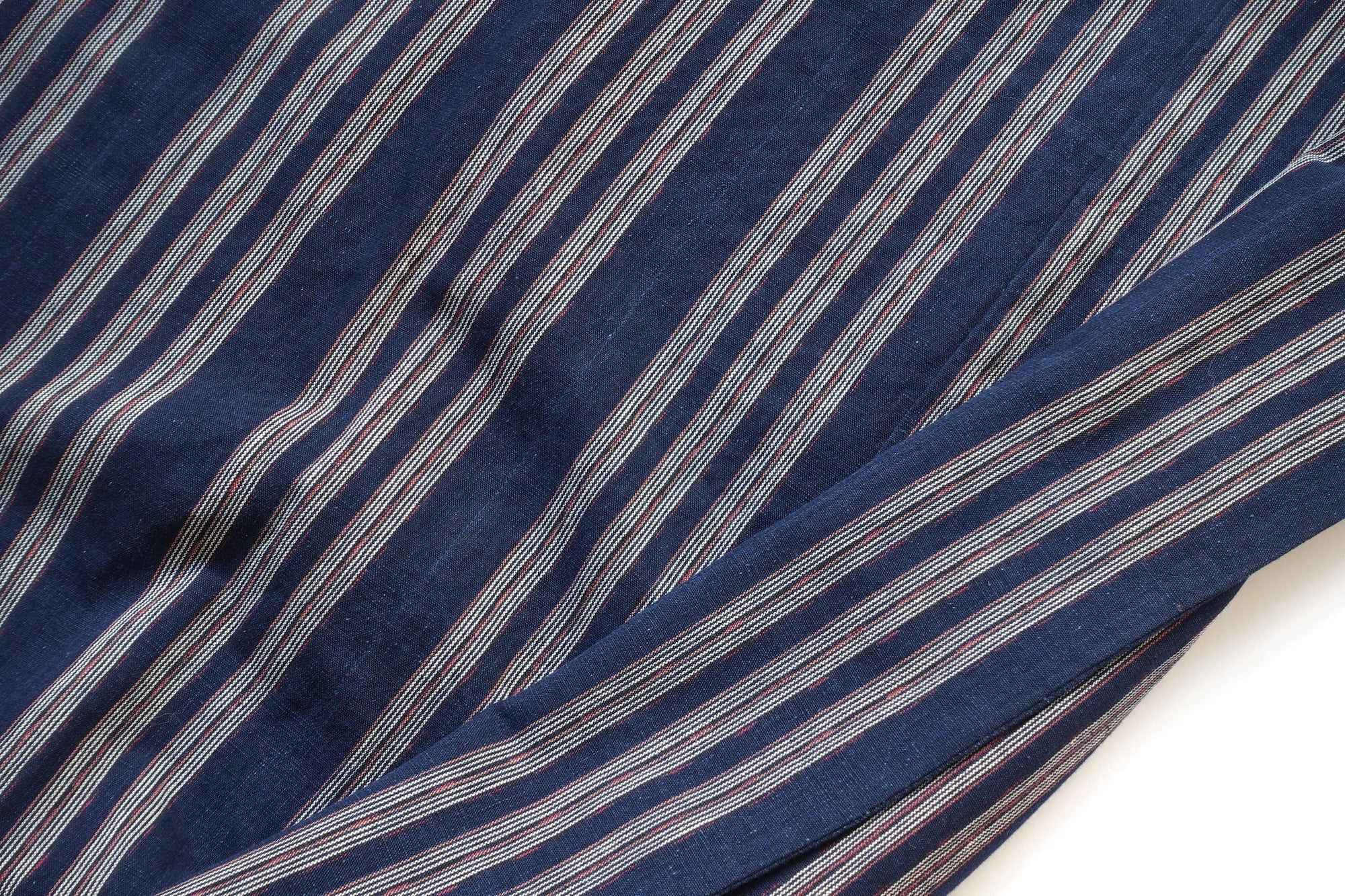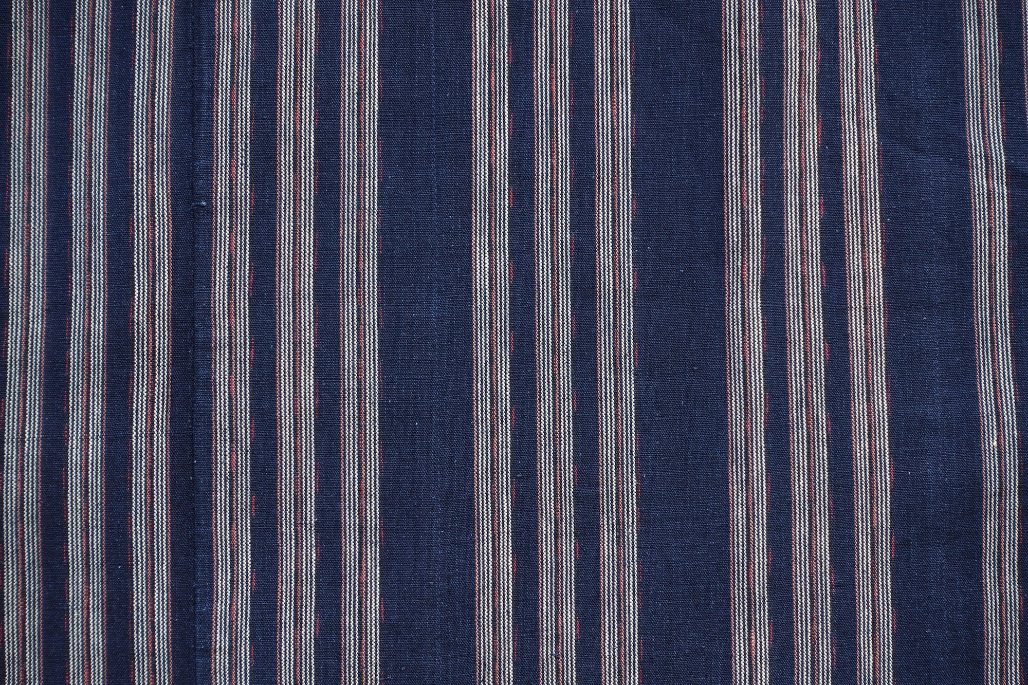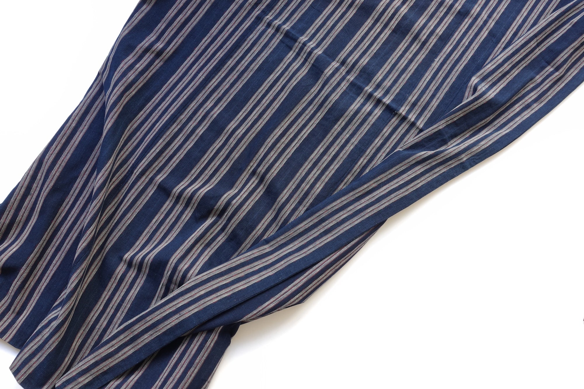 A double-layered blanket crafted from mid-twentieth-century "shima" (striped) cotton fabric. The deep indigo with red stripe accents gives it a strikingly modern feel. The original fabric is in great condition. Perfect as a light blanket on the bed, a throw on the sofa, or a companion for picnics and outdoor outings.